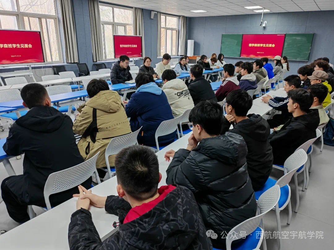 为深入了解钱学森实验班学生学习生活情况,加强师生交流,3月3日下午2:30,航空宇航学院(低空技术与工程学院)在阎良校区二号实验楼2201室组织召开钱学森实验班师生见面会。学院党委书记孙茉莉、党委副书记刘雨辰、钱学森班辅导员及全体学生参加本次会议。