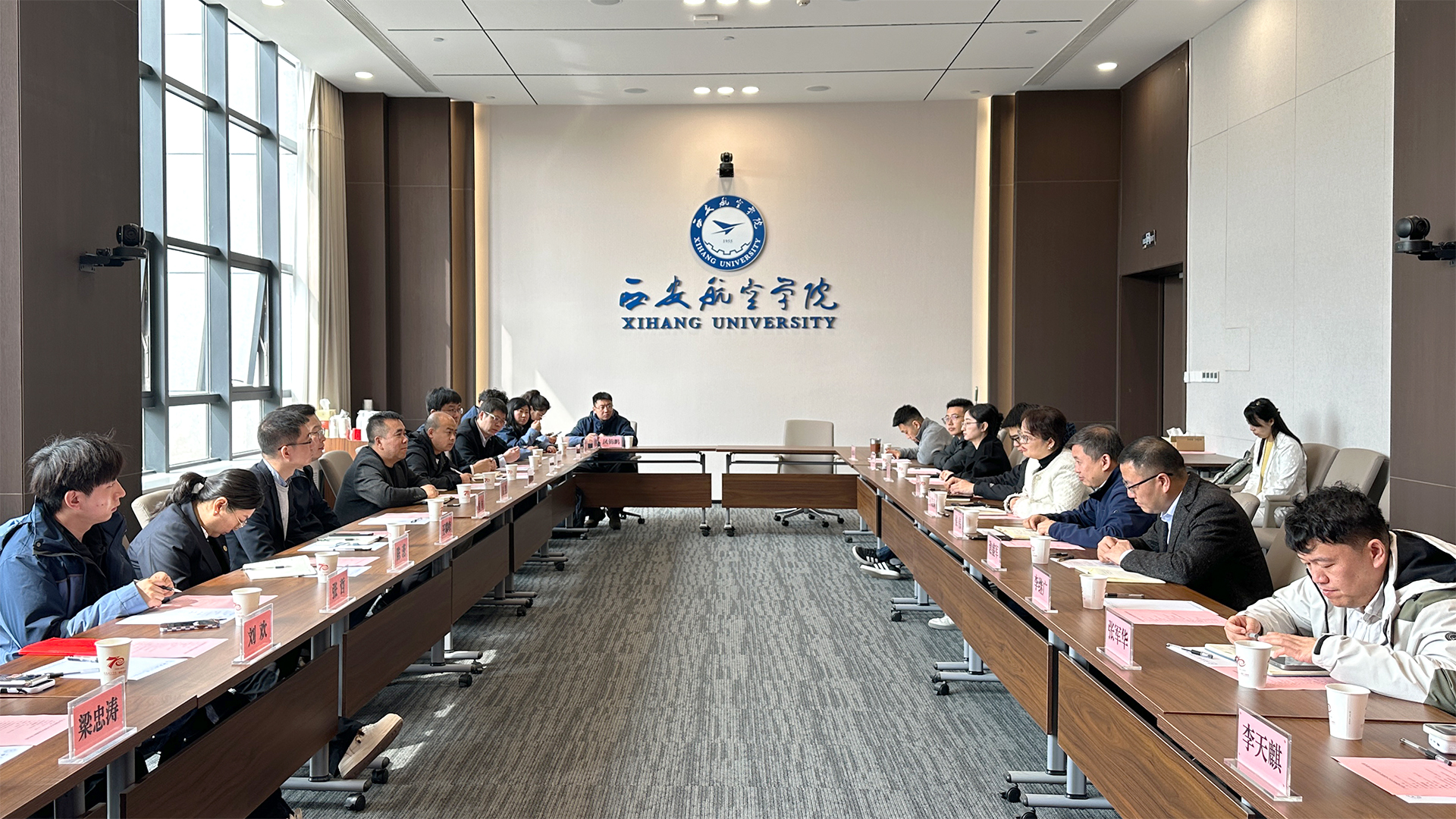 2026年3月25日,广电计量检测(西安)有限公司总经理付喆、副总经理马斐、党支部副书记王攀峰及业务骨干一行到访西安航空学院航空宇航学院,双方围绕校企协同育人、科研合作及党建等方面开展交流座谈。航空宇航学院领导班子成员、党委委员及教师代表参加会议。会议由学院党委书记孙茉莉主持。