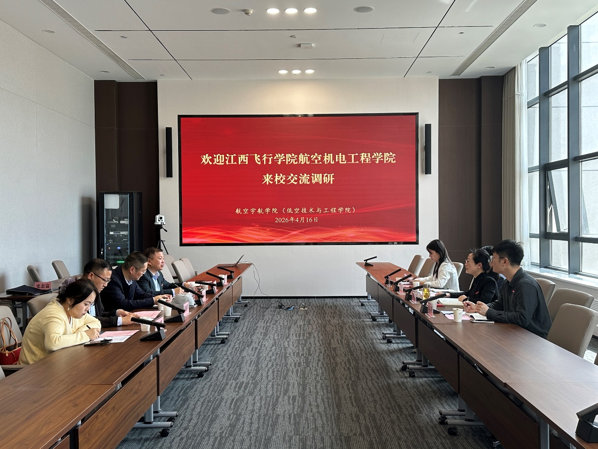 4月16日上午,江西飞行学院航空机电工程学院党总支书记艾玮一行来院交流调研,学院院长董彦非、副院长侯伟及相关教师参加座谈。