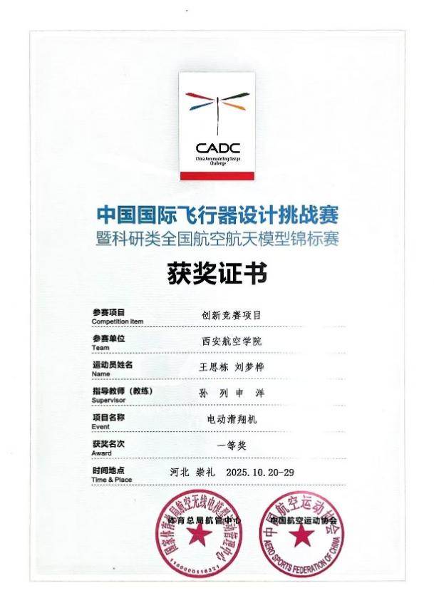 2025年中国国际飞行器设计挑战赛总决赛暨科研类全国航空航天模型锦标赛于10月22日至27日在河北省张家口市举行。赛事由国家体育总局、中国学生体育联合会、中国航空运动协会主办,吸引西北工业大学、哈尔滨工业大学、南京航空航天大学等全国高校1600余名师生参赛。我校航模队凭借扎实的专业功底与创新实践能力,斩获多个奖项,展现了西航学子在航空航天挑战赛中的实践创新实力。