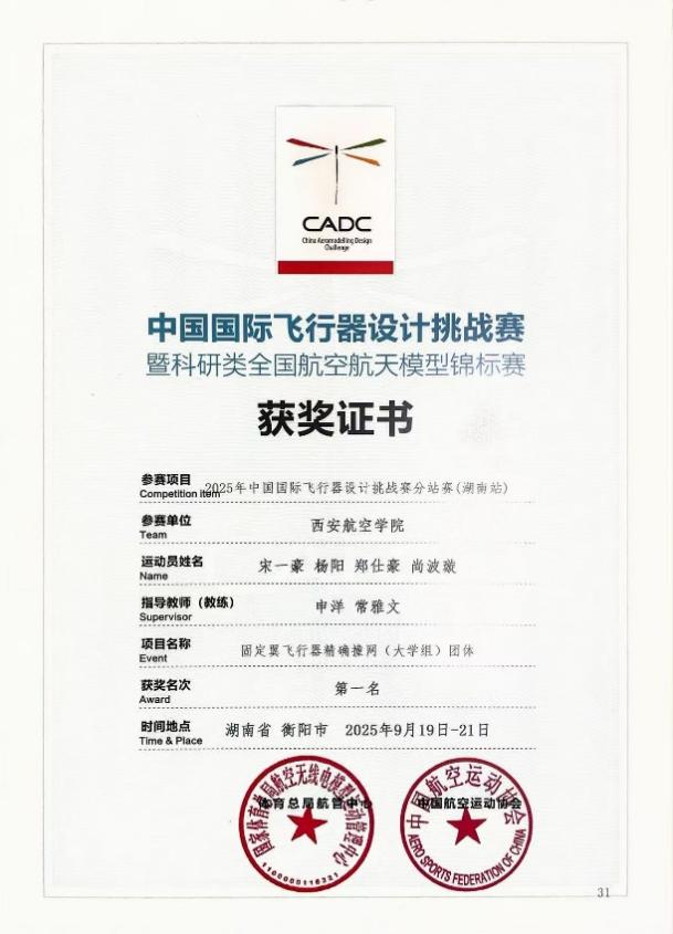 中国国际飞行器设计挑战赛是融合科技创新、工程实践与团队协作的高水平赛事,对培养学生科技创新能力、助力低空经济发展意义重大。我校将以此次获奖为契机,持续深化体教融合,推动学科实践与赛事育人深度结合,为社会输送更多高素质应用型人才。(文、图/飞行器学院(低空技术与工程学院) 申洋 审核/刘建强)