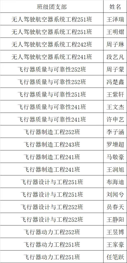 经航空宇航学院(低空技术与工程学院)团总支讨论研究,拟推荐以下20名优秀学生作为入团积极分子,现将名单公示如下。