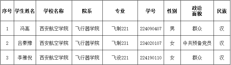 飞行器学院(低空技术与工程学院)2024-2025学年国家奖学金推荐学生名单